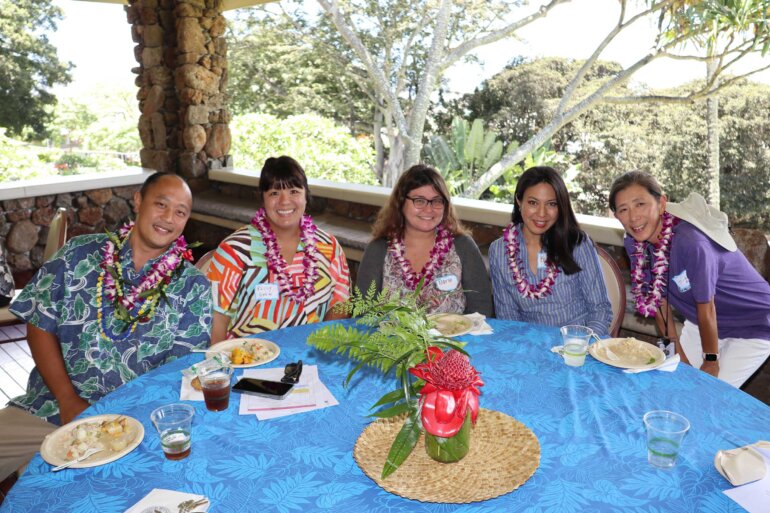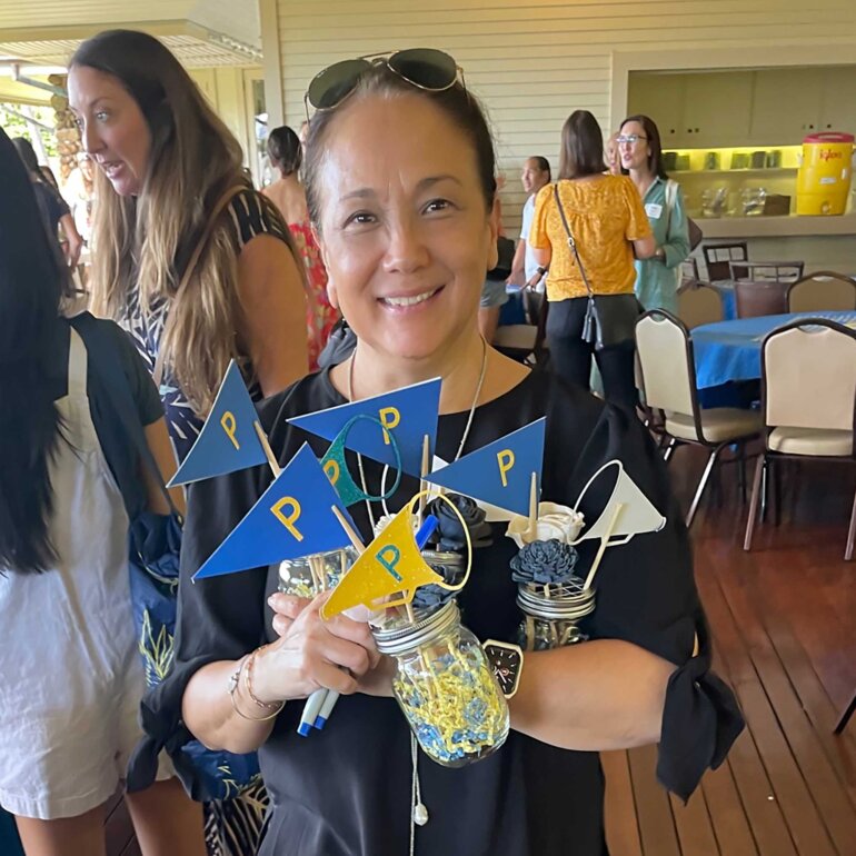 Some might imagine their first Punahou PFA Monthly Gathering could feel like walking into the cafeteria at a new school: Where will I sit? Will I know anyone? It’s the Hospitality Committee’s hope to leave attendees feeling welcomed, inspired, and grateful to have met some friendly new people!