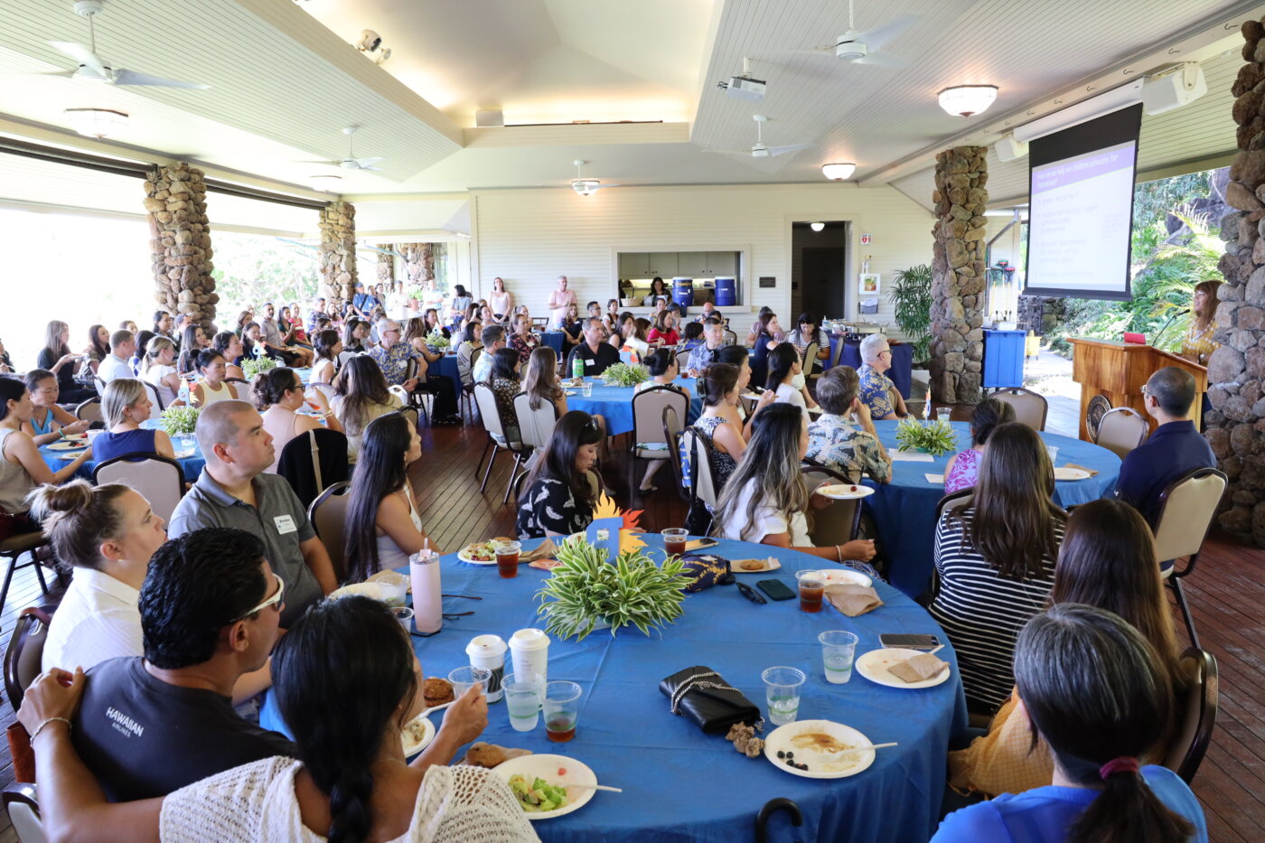 The October PFA Monthly Gathering brought Punahou families together for a thoughtful and engaging conversation on what it truly means to navigate the middle school years. Chaplain Hayashi opened the lunch with the Serenity Prayer, a fitting reflection for families navigating the middle school years – a reminder to find peace in what we cannot control, courage to guide and support our children through these transformative times, and wisdom to know when to step back and let them grow. Assistant Principal Dr. Chase Mitsuda warmly welcomed everyone and set the tone for a lunch of reflection, laughter, and practical insight. He then introduced the three class deans, who each shared valuable perspectives on how parents and educators can work together to help students build confidence, learn from mistakes, and develop self-advocacy skills that will serve them well beyond middle school.