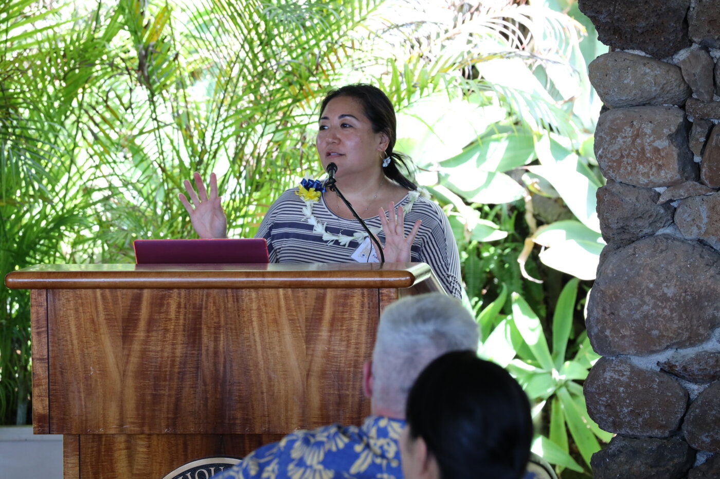 Rianne Graves-Grantham (Dean of the Class of 2031) introduced this year’s guiding theme: ʻAuamo Kuleana – to carry responsibility with purpose. She encouraged families to help children practice academic self-advocacy by identifying their needs and communicating directly with teachers. Parents can support this by reviewing Canvas together weekly and celebrating when their child takes initiative. Dean G-G also emphasized behavioral and emotional self-advocacy, suggesting parents teach assertiveness and role-play conversations to help children prepare for real situations. Celebrating small wins, she noted, reinforces confidence and independence.