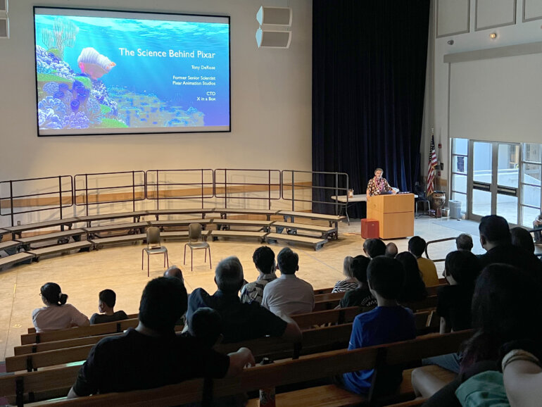 Their time at Punahou culminated in three simultaneous public evening events for the community on Friday. During the events, Klaidman discussed the art and story behind Pixar’s films, while DeRose delved into the science behind the animation magic. Cruise shared about new educational experiences in the age of AI, and gave an inside look at how the free digital education platform, Khan Academy, partnered with Pixar to create the online course, “Pixar in a Box.”