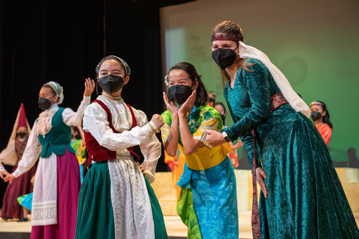 In a statement in the script, playwright Lisa Matsumoto and Roslyn Freitas ’82 Catracchia, who wrote the music and lyrics, shared that “the show hopes to encourage each of us to celebrate and embrace our own cultural heritage, quirks and all, while respecting and appreciating the diversity of other cultures so we may find tolerance, acceptance, peace and harmony.”