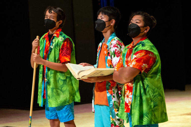 This is the first time the popular Hawai‘i play has been adapted as a middle school production, with special permission from Catracchia. Catracchia lent her talents to teaching the cast music, while Director of Punahou’s Kuaihelani Center for ‘Ike Hawai’i Kealohi Reppun assisted as a dialect coach for the performance in Hawai’i Creole English (Pidgin).