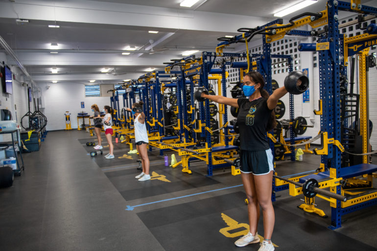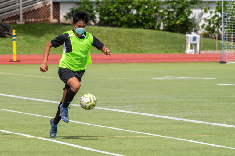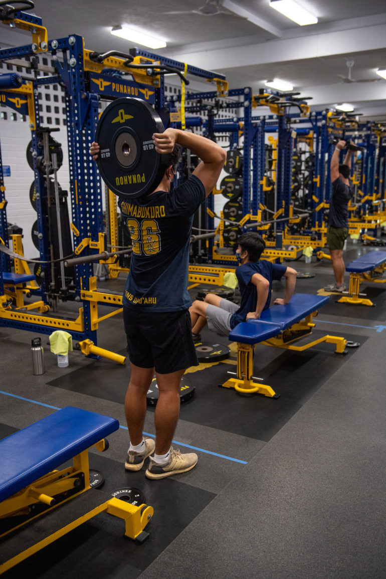 Punahou Athletic teams have been practicing, training and competing, while following School and State health and safety protocols. The athletes have been holding team workouts in the School’s Athletic Performance and Fitness Center, as well as practices and scrimmages for Varsity soccer and basketball. Sports that were allowed by the ILH to compete – including air riflery, cheerleading, cross country, swimming and diving and JV tennis – have been taking part in competitive events , while Varsity soccer and basketball, which were not allowed to compete, have resumed practices and scrimmages.