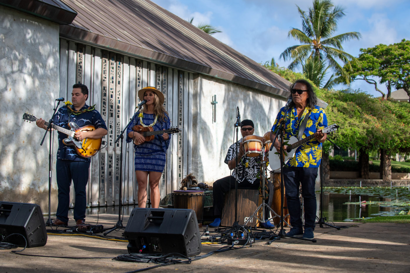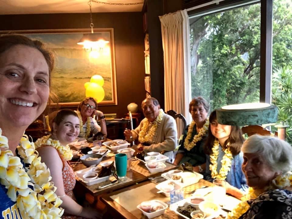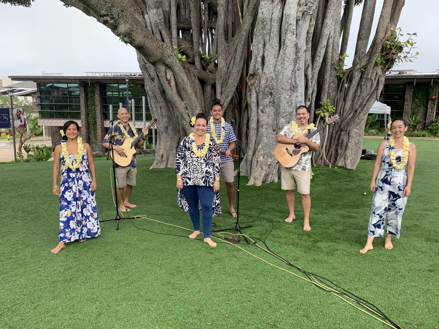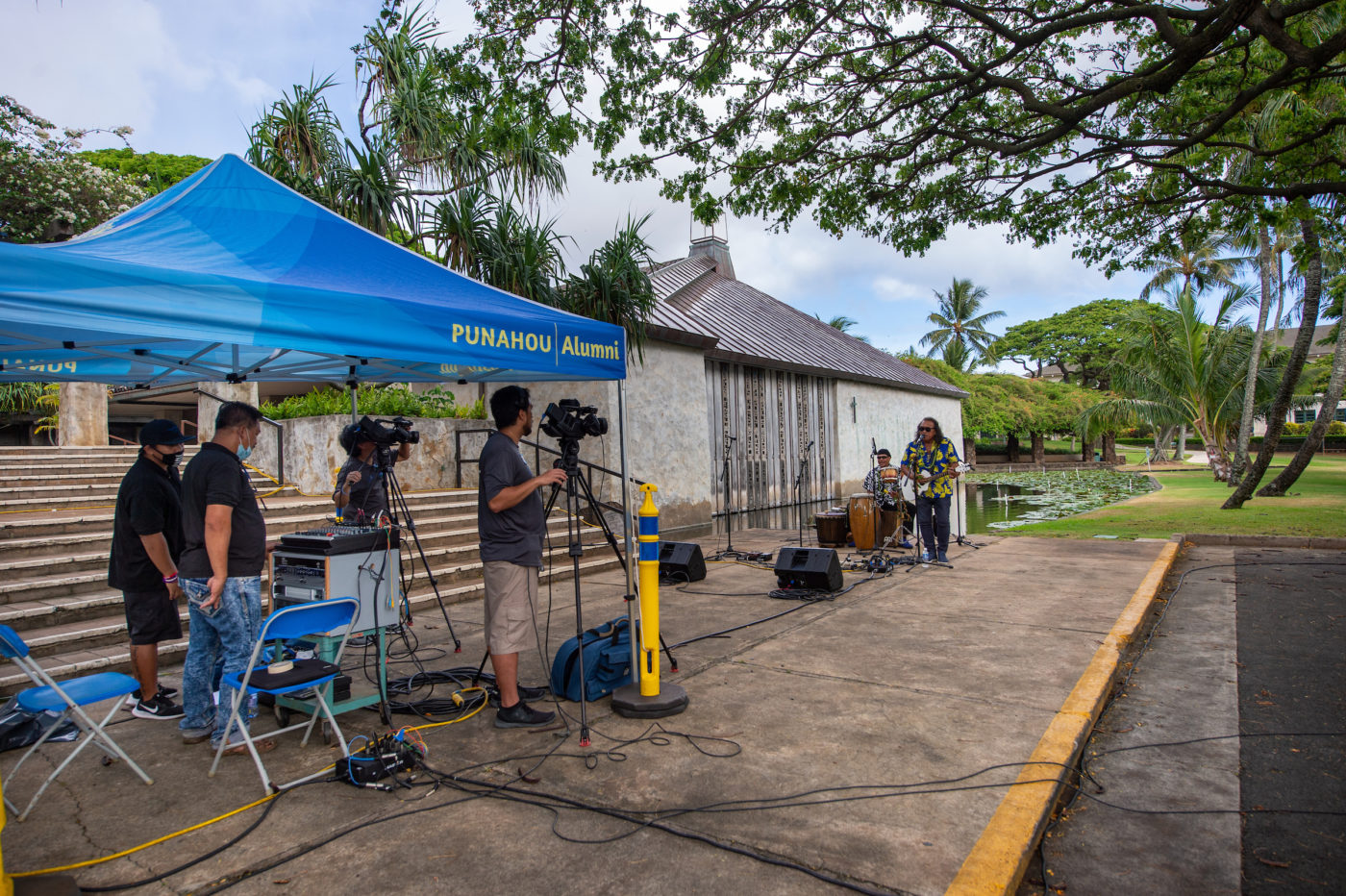 Guests tuning in live were encouraged to socialize within the Facebook comments and to leave song requests for the musicians. Attendees on O’ahu also had the opportunity to preorder lū‘au plates from Haili’s Hawaiian Foods, so they could watch and eat together. Punahou Advancement staff delivered Hawaiian food to alumni living at Arcadia and Kahala Nui.