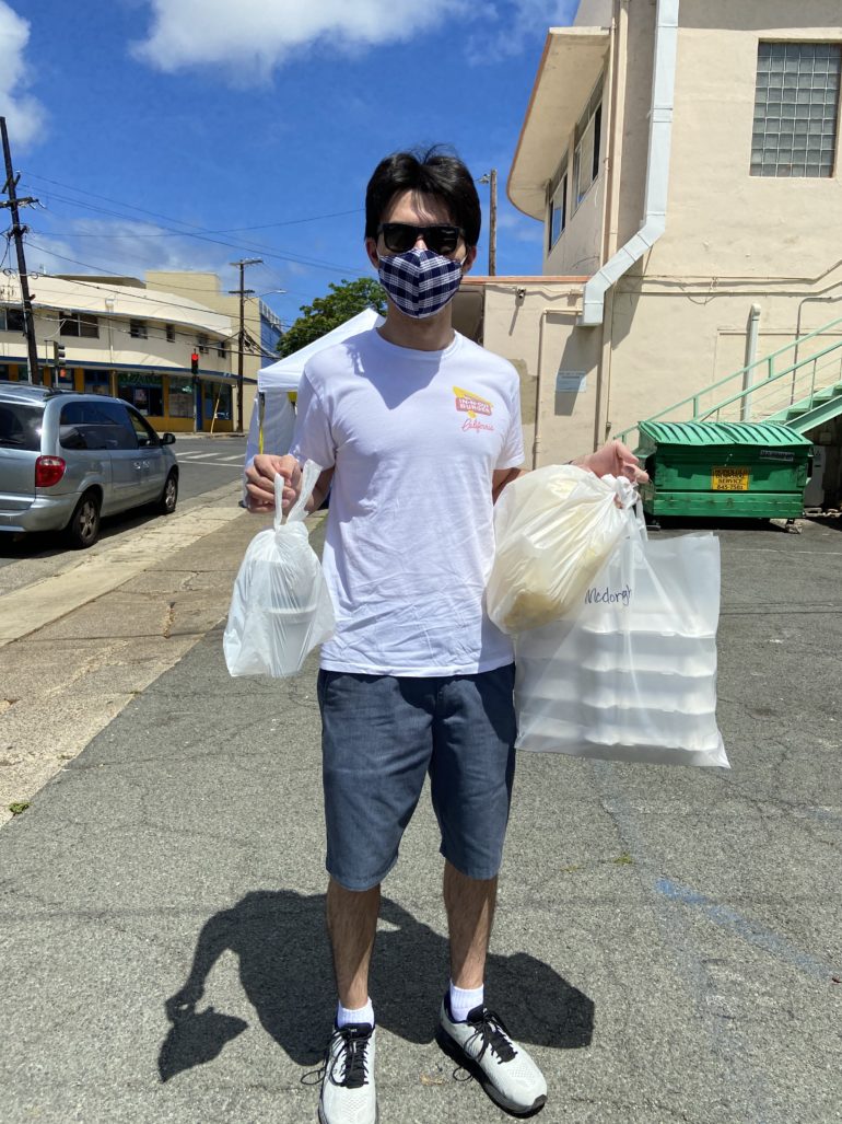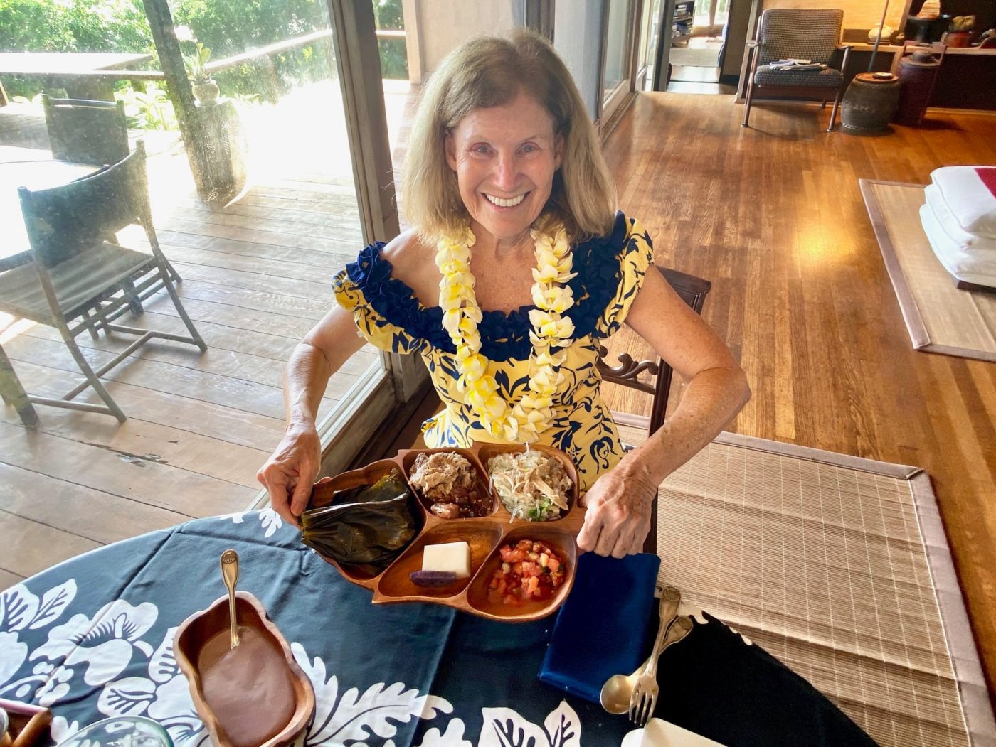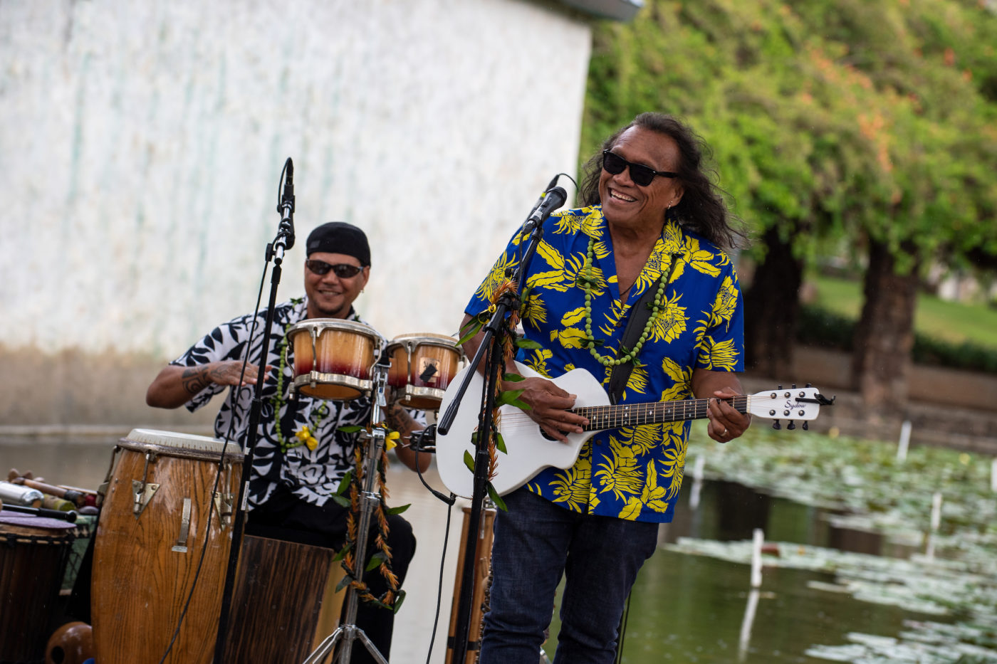 Guests tuning in live were encouraged to socialize within the Facebook comments and to leave song requests for the musicians. Attendees on O’ahu also had the opportunity to preorder lū‘au plates from Haili’s Hawaiian Foods, so they could watch and eat together. Punahou Advancement staff delivered Hawaiian food to alumni living at Arcadia and Kahala Nui.