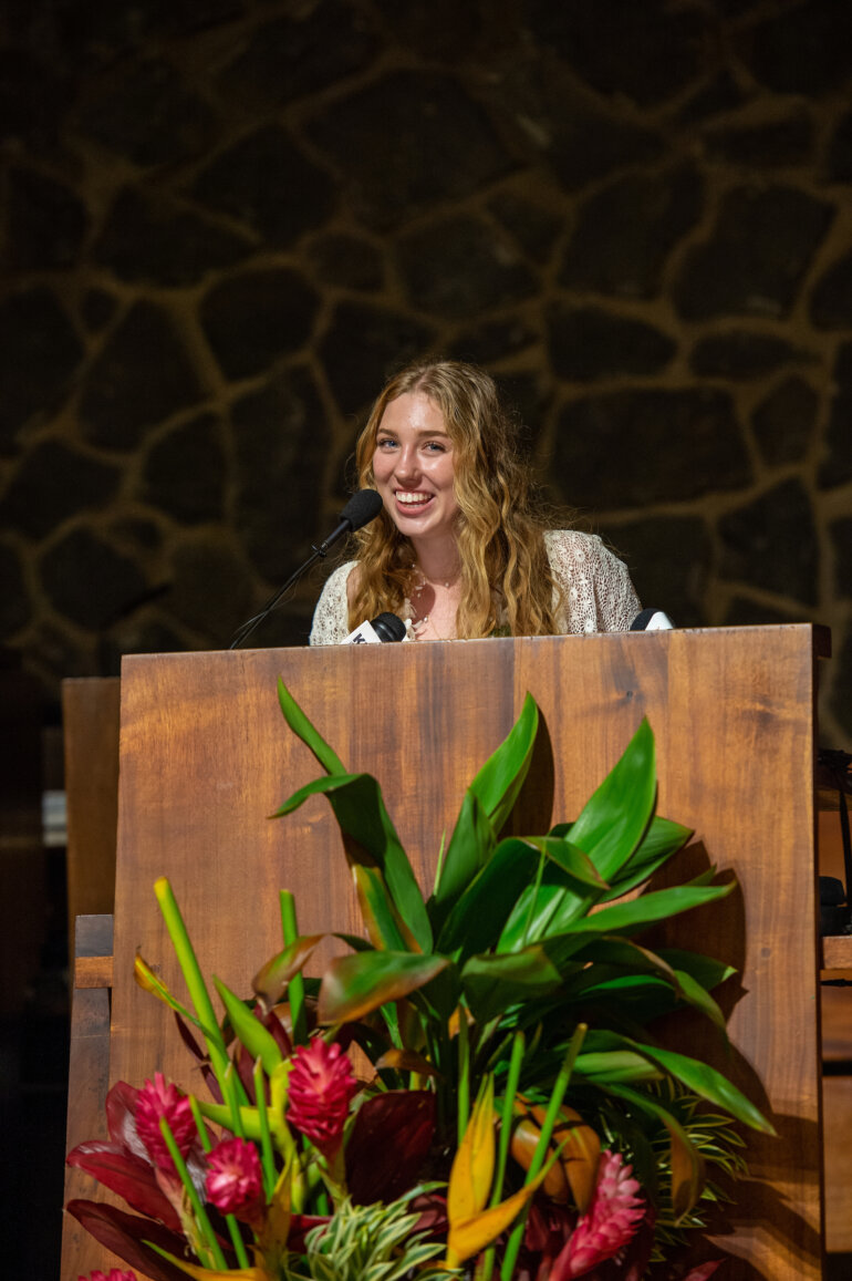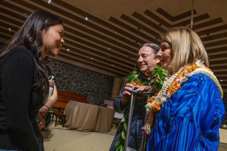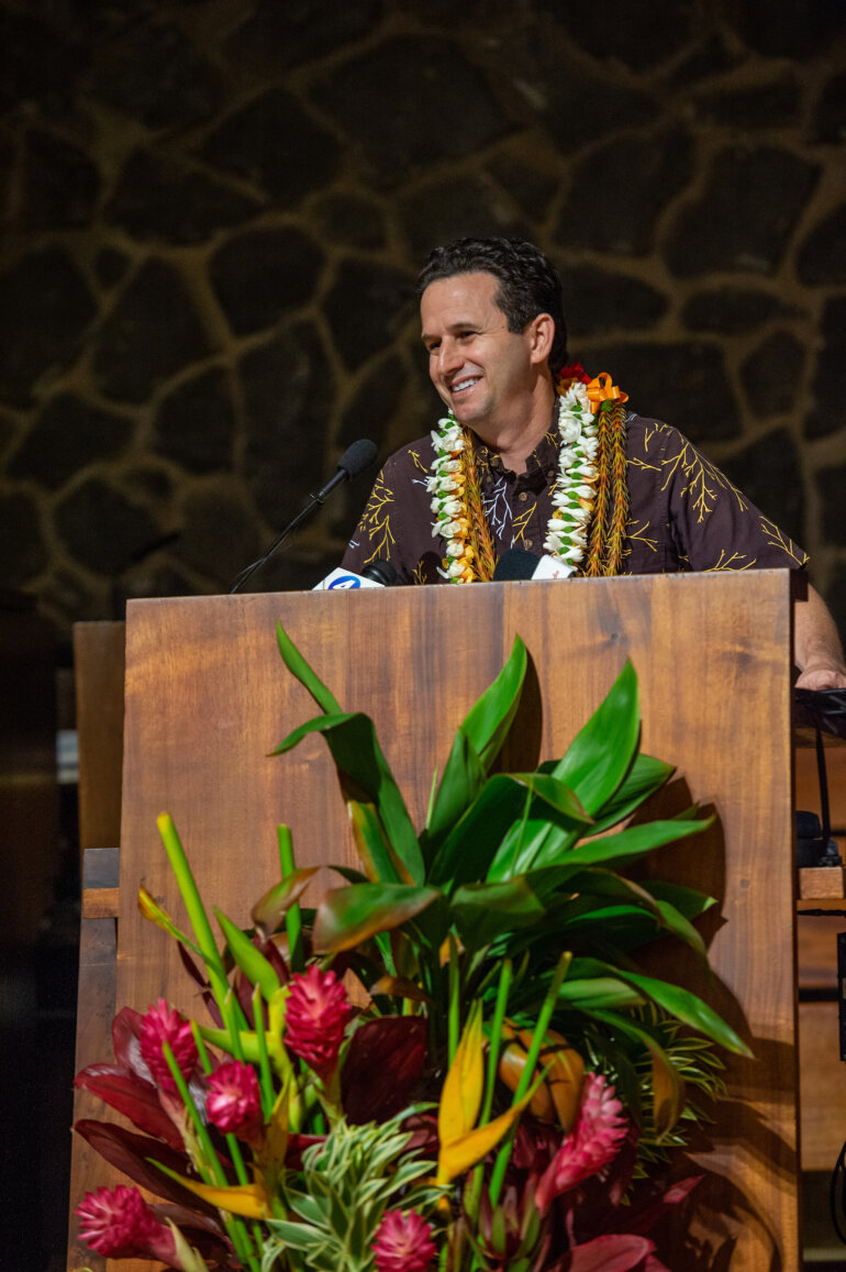 More than 200 were in attendance for the launch, which included remarks from the politicians, along with Punahou President Mike Latham ’86, Mark Davis, Punahou senior Chloe Devere ’23, who introduced Schatz, and Kuaihelani kumu, who performed mele oli.