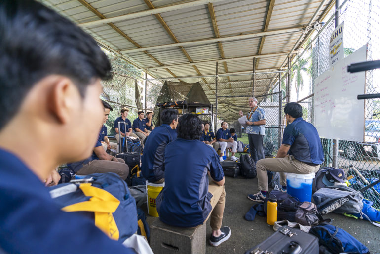 Shortly before the varsity boys baseball team left for the state tournament on May 7, they got a pep talk from one of their biggest fans – Punahou President Jim Scott ’70. Scott played baseball when he was in high school, and he reminded the team that they play not only for each other, but for the guys who came before them.