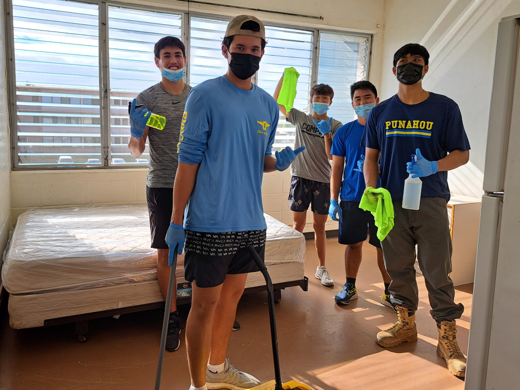 Way to go, clean-up crew! On a recent weekend, Taylor Hamilton ’09 and Lynn Kimura ’81 Kunishige’s Academy class helped prep the Onelauʻena Emergency Shelter in Kapolei for new occupants and got to know some of the residents, which made the service day even more impactful.