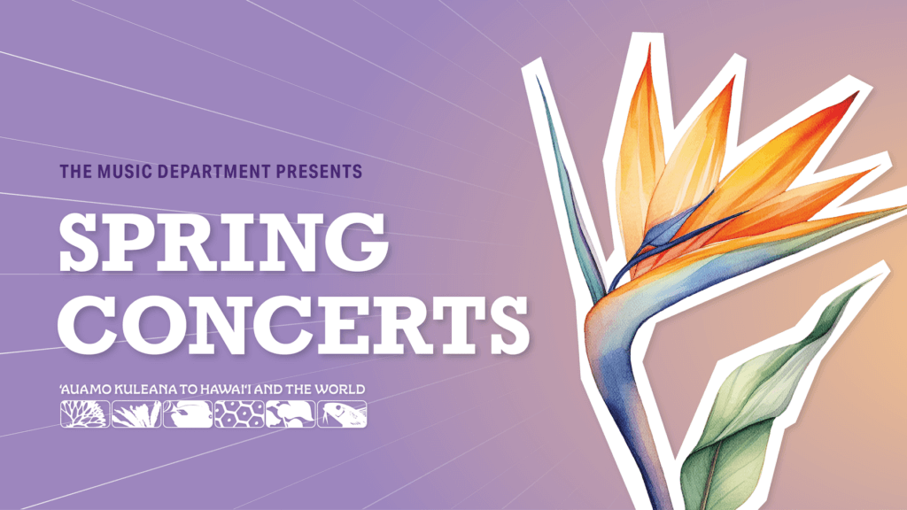 Celebrate the work of our accomplished students with us in person as they perform in Dillingham Hall and Twigg-Smith Pavilion. If you are unable to join us in person, watch livestreams or recorded videos of this season’s performances via the links that will be posted below. No registration is required to view the livestreams.