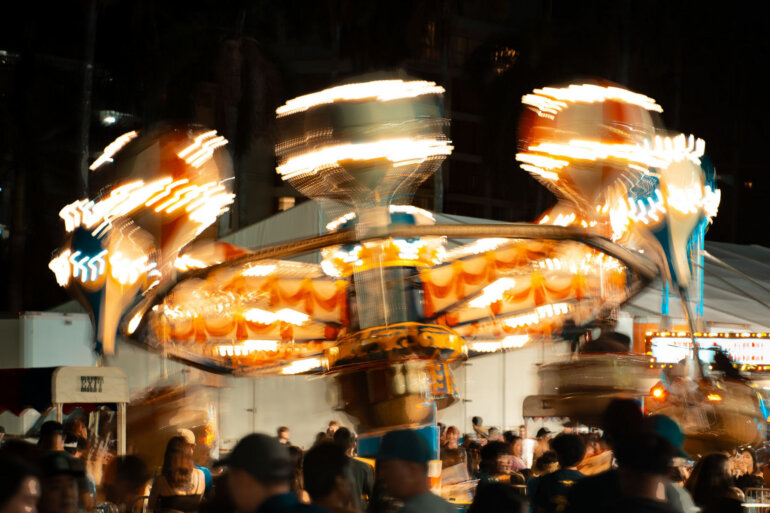 West’s winning image captures the glow of the carousel illuminated against the dark backdrop of the evening, with the bright lights of Zero Gravity in the distance. “My favorite thing about Carnival is seeing it at night, with the glowing lights against the stark contrast of the night sky,” she said, adding that she was “beyond excited” to learn her photo had been selected.