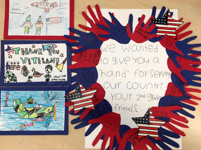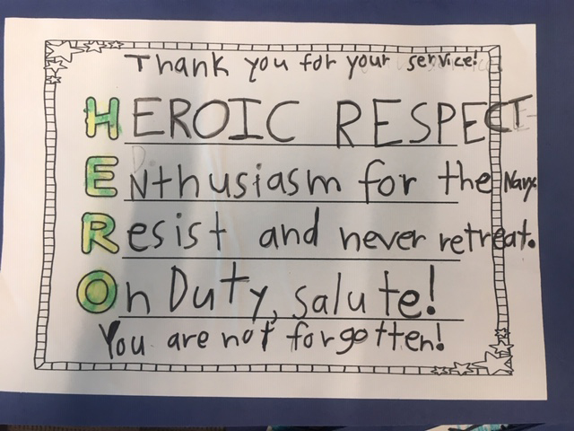 Several Punahou classes and JROTC students combined efforts to recognize veterans residing at the Maunalani Nursing and Rehabilitation Center on Maunalani Heights. Kindergartners from Kina‘u Hirahara ’86 Shipman’s class and second graders, including those from Joanne Kuwada’s class, filled a large box with handwritten cards, letters and posters addressed to veterans. The items were delivered to the center ahead of Wednesday’s service, in lieu of the annual live program with Punahou JROTC students.