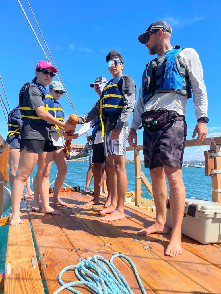 The class centers around the principal, “He wa‘a he moku, he moku he wa‘a: The canoe is an island, the island is a canoe.” While voyaging in the middle of the ocean, there is a keen awareness that resources are limited aboard the canoe. Likewise, on an island, resources are finite and space is limited. In both cases, people must depend on each other, care for their crew or communities, and care for the natural resources in order to survive.