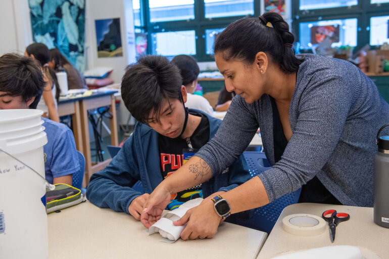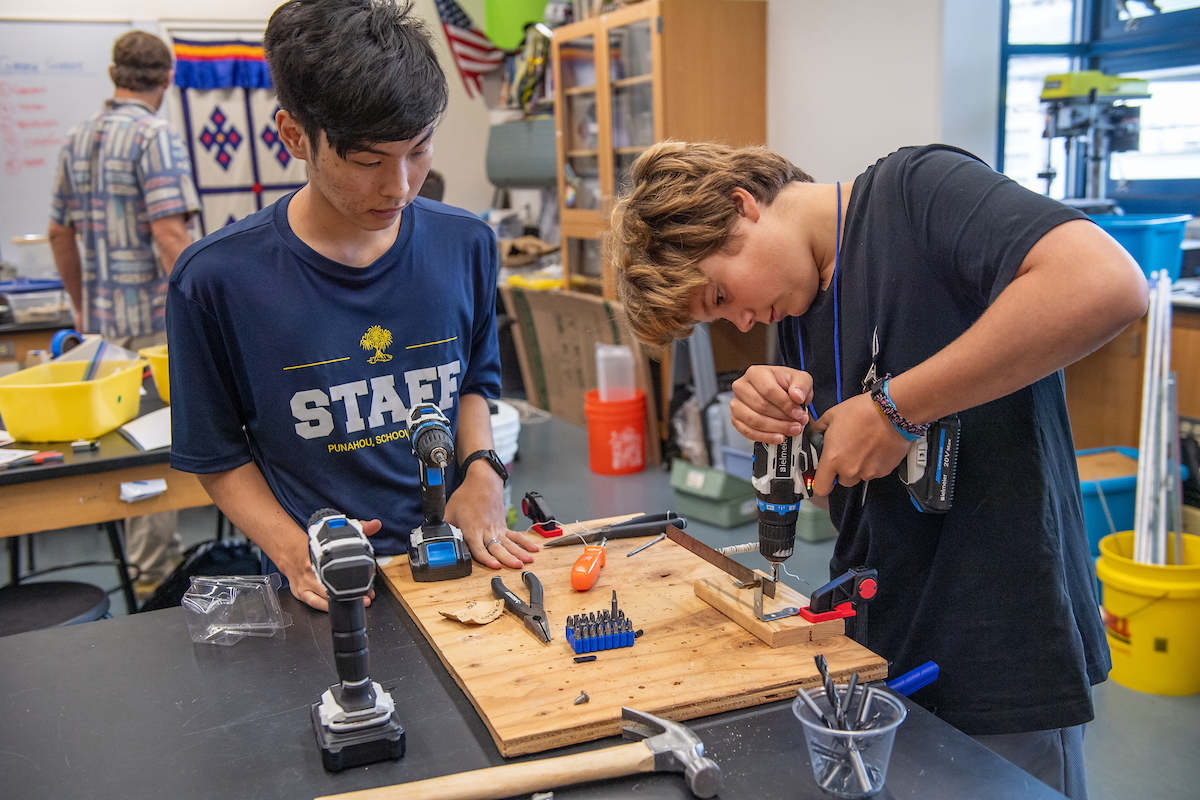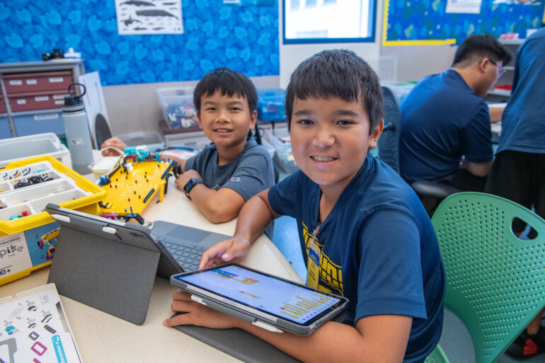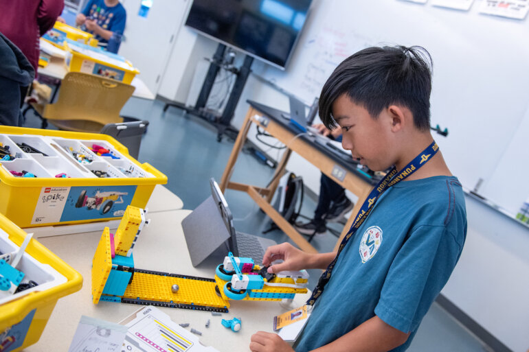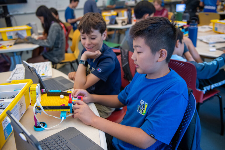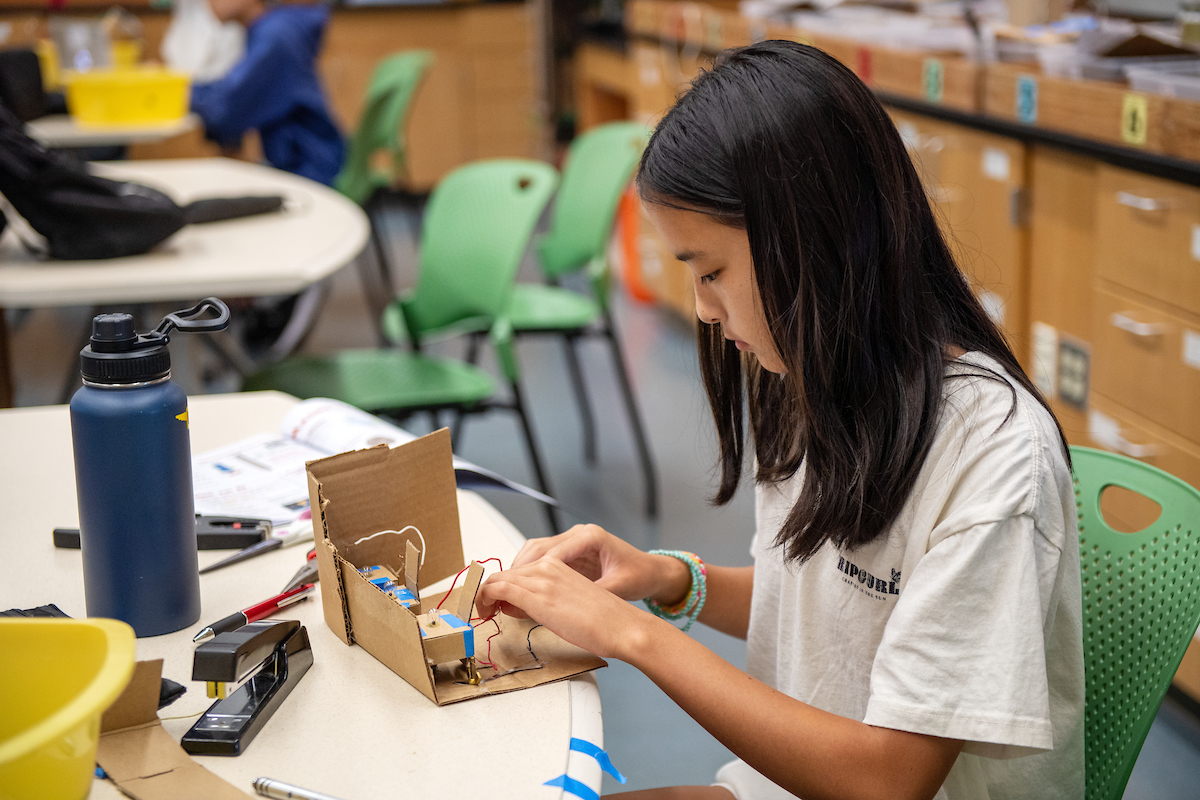Students got engrossed in hands-on activities in science, math and engineering this summer in such classes as grades 6 – 8 Robotics; grades 6 – 8 “Let’s Design and Make Some Shoes!”; grades 7 – 8 “Garage Science”; and Academy Chemistry. Photos by Kathleen Connelly