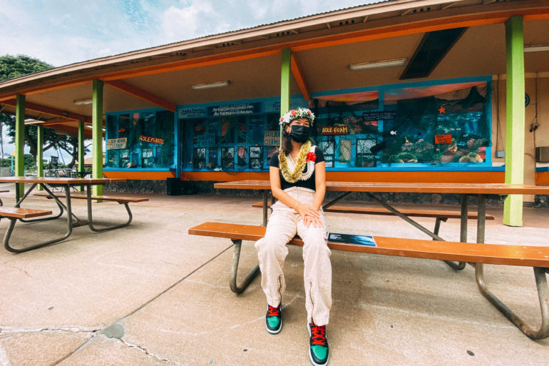 Stephanie Hung ’21 spent two weeks painting a mural at Wet ’n’ Wild Hawaii