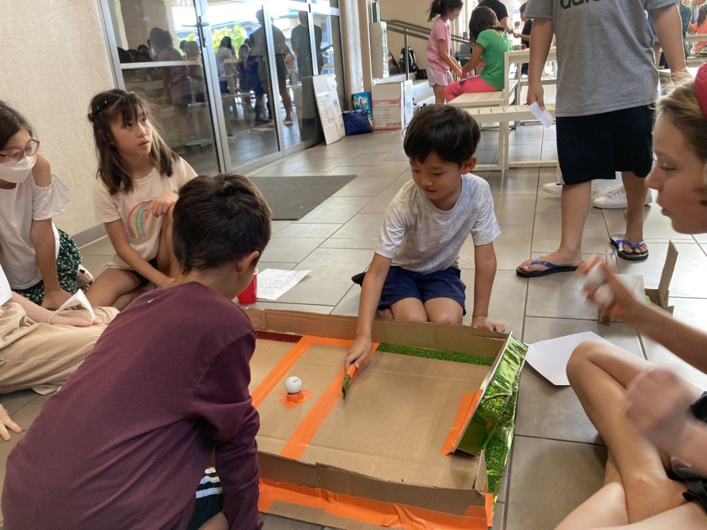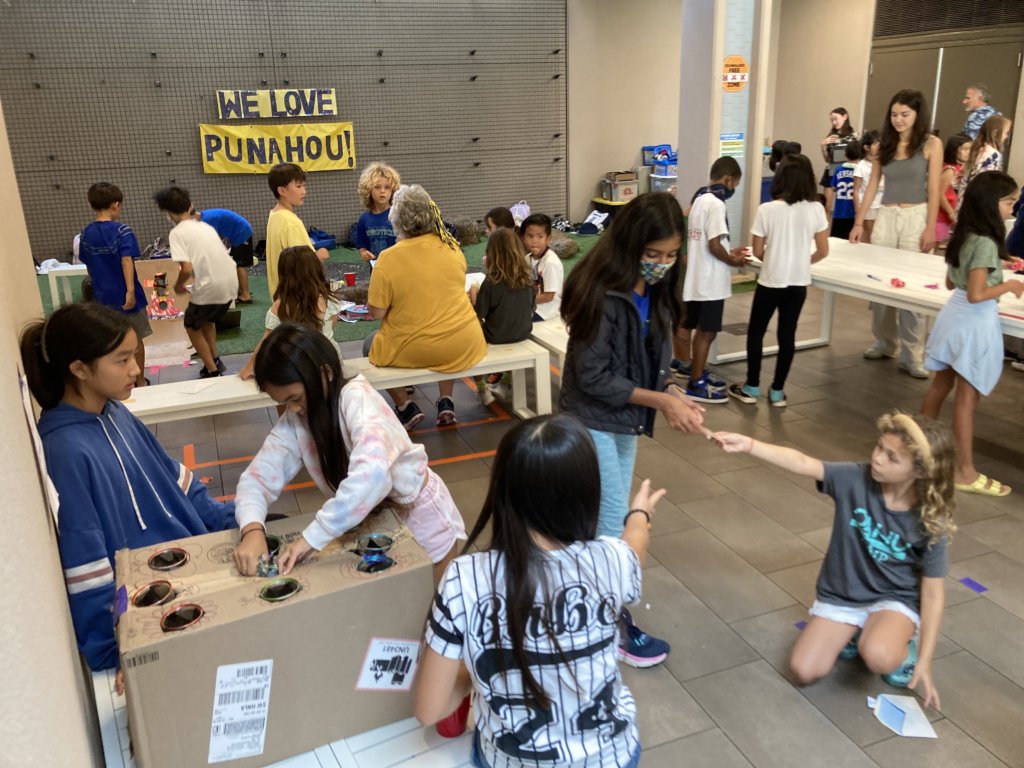 Fifth, fourth and second graders created fun Punahou Carnival-inspired games out of recyclables and invited classmates and teachers to donate canned goods to play.