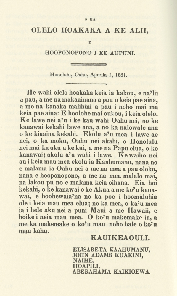3 Silverman, Jane L., Ka‘ahumanu: Molder of Change, Friends of the Judiciary History Center of Hawaii, Honolulu, 1987, p. 110.