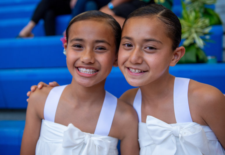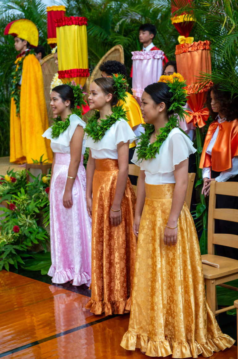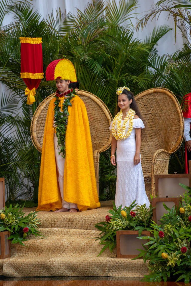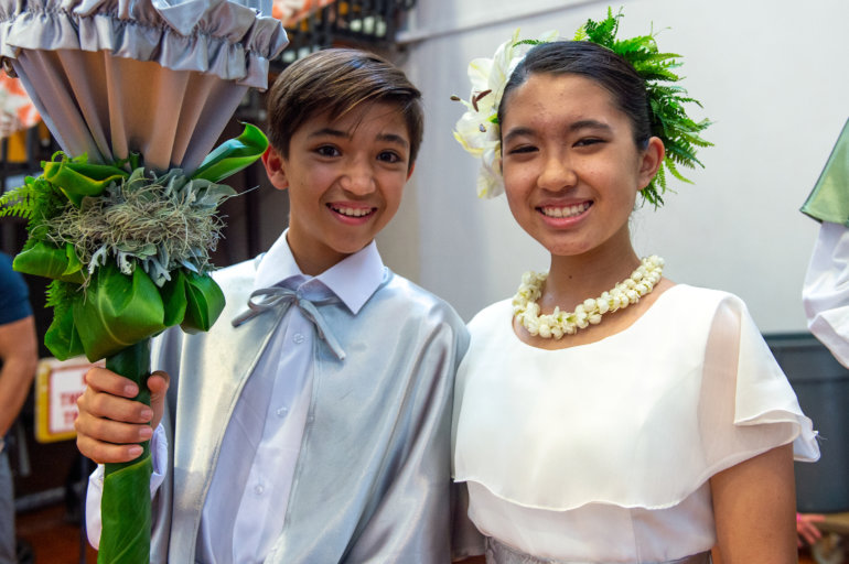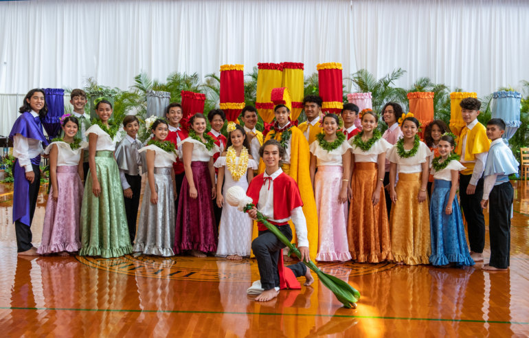 Leilehua Phillips ’95 Utu and Lauliʻa Phillips ’98 Ah Wong, co-directors of the Holokū Pageant and May Day Program