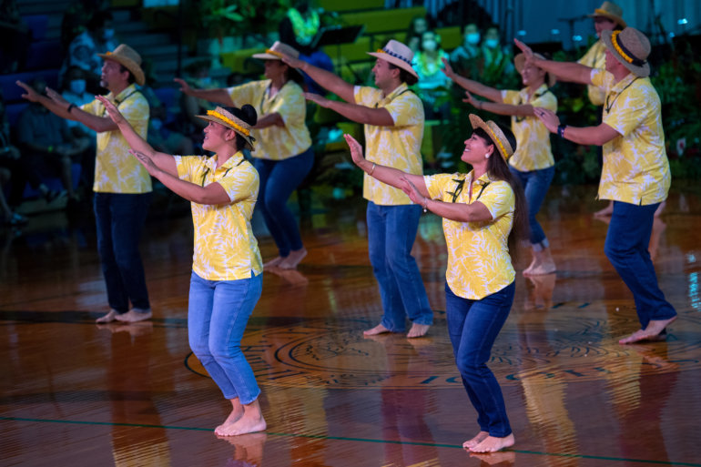 There is much that can be said about this year being a year that we return from the urgency of a pandemic to recall, return and recollect our thoughts about the places, the beautiful natural environment and the people that we love. Through the many traditions of our May Day festivities, we acknowledge all that we love about where we come from, where we live, and where we thrive through the poetry and melodies of some of our favorite songs. He Aloha Kēia is a theme that is inspired by the ʻōlelo noʻeau Aloha Kekahi i Kekahi. A line that is often heard in the refrain of many a Hawaiian composition, He Aloha Kēia means “This is a gesture of love,” an offering that we extend to you in hopes that this May Day/Holokū brings us together in love, to experience the many facets of love through poetry, and that we are inspired to continuously return to love in all that we choose to do and be moving into the future.