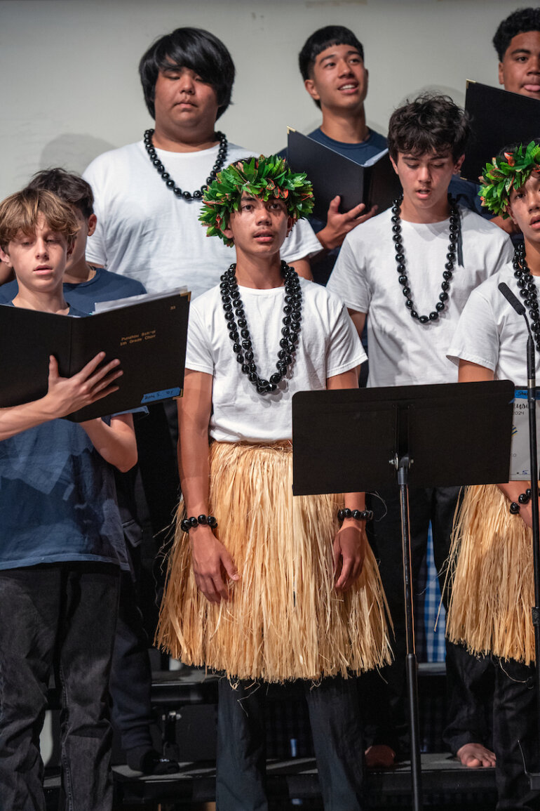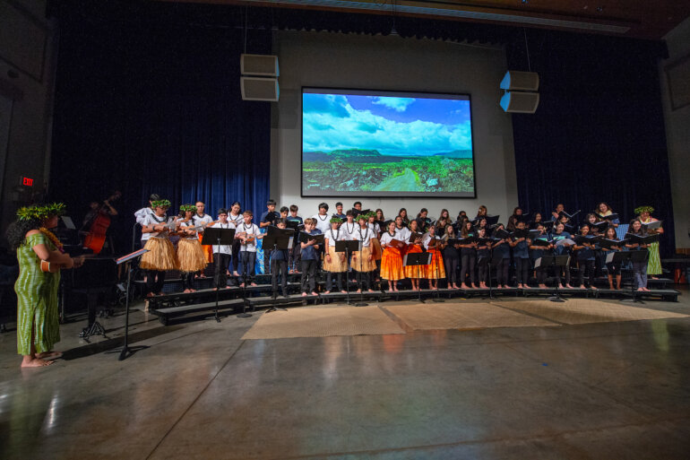 On Friday evening, May 24, the Twigg-Smith Pavilion was filled with the sounds and spirit of Hawai‘i as the eighth grade Hawaiian music class took the stage to present “Pūkuʻi i Ke Aloha.”