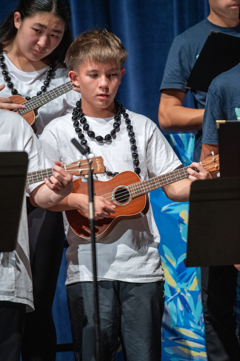 In addition to the 31 students from the Hawaiian music class, the concert also featured the talents of 40 eighth grade choir students and 18 seventh grade choir students. This performance was the culmination of the students’ hard work and dedication in their music classes.
